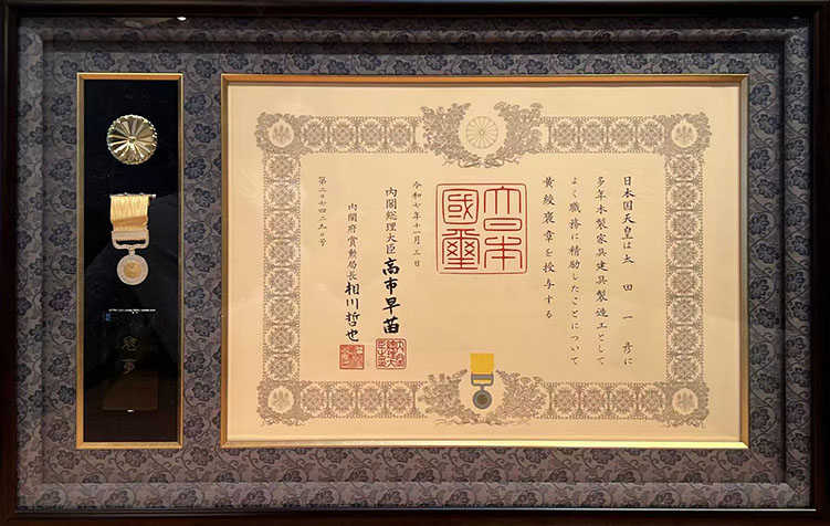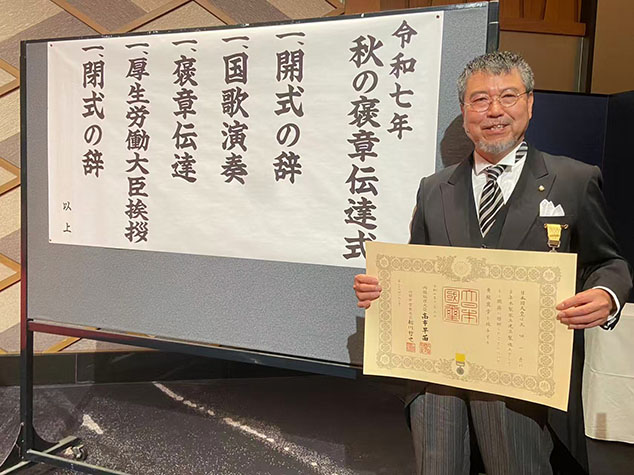 この度、長年の業務に対する評価として黄綬褒章を拝受いたしました。
