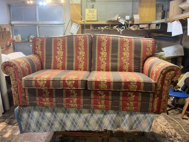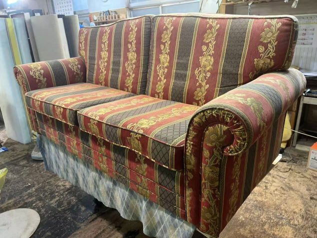 某ホテルからご依頼いただき、ソファの張地を交換しました。